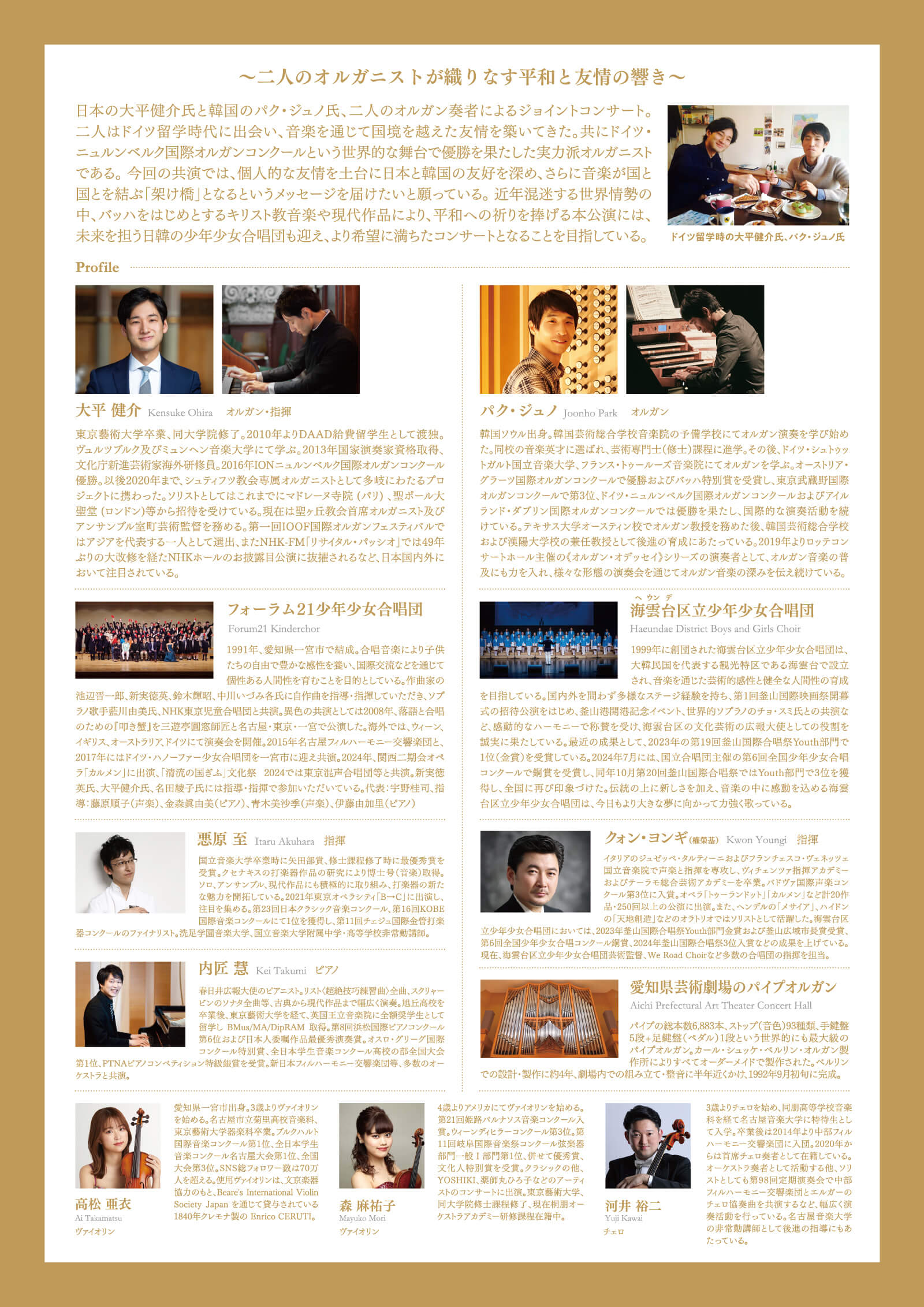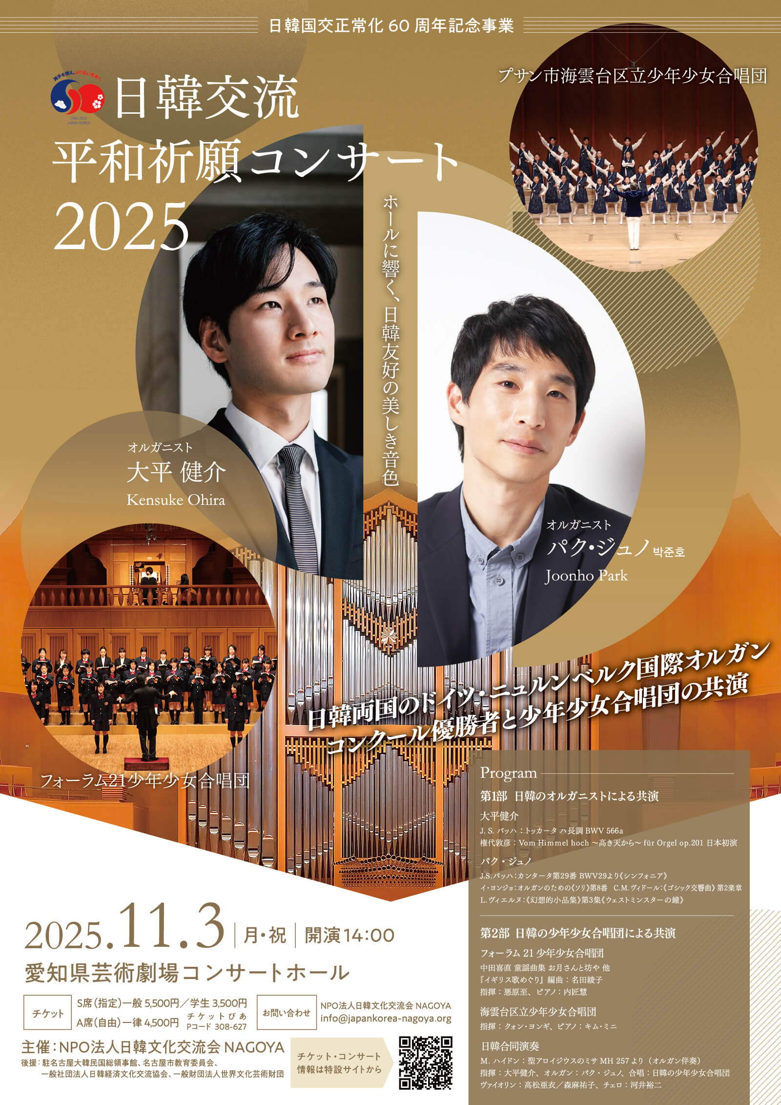 NPO法人日韓文化交流会NAGOYA日韓両国のドイツ・ニュルンベルク国際オルガンコンクール優勝者と少年少女合唱団が共演します。