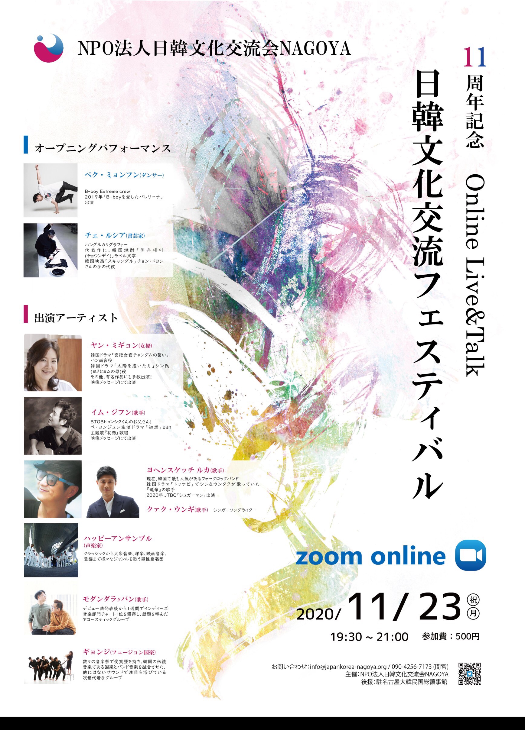 これまで私たち日韓文化交流会NAGOYAと交流してきた韓国のアーティストたちを、オンラインを通じて再びお迎えするライブ&トーク交流会です。お互いの近況を尋ね、共に心から応援し合い、この困難な時期を克服していくことができますように!